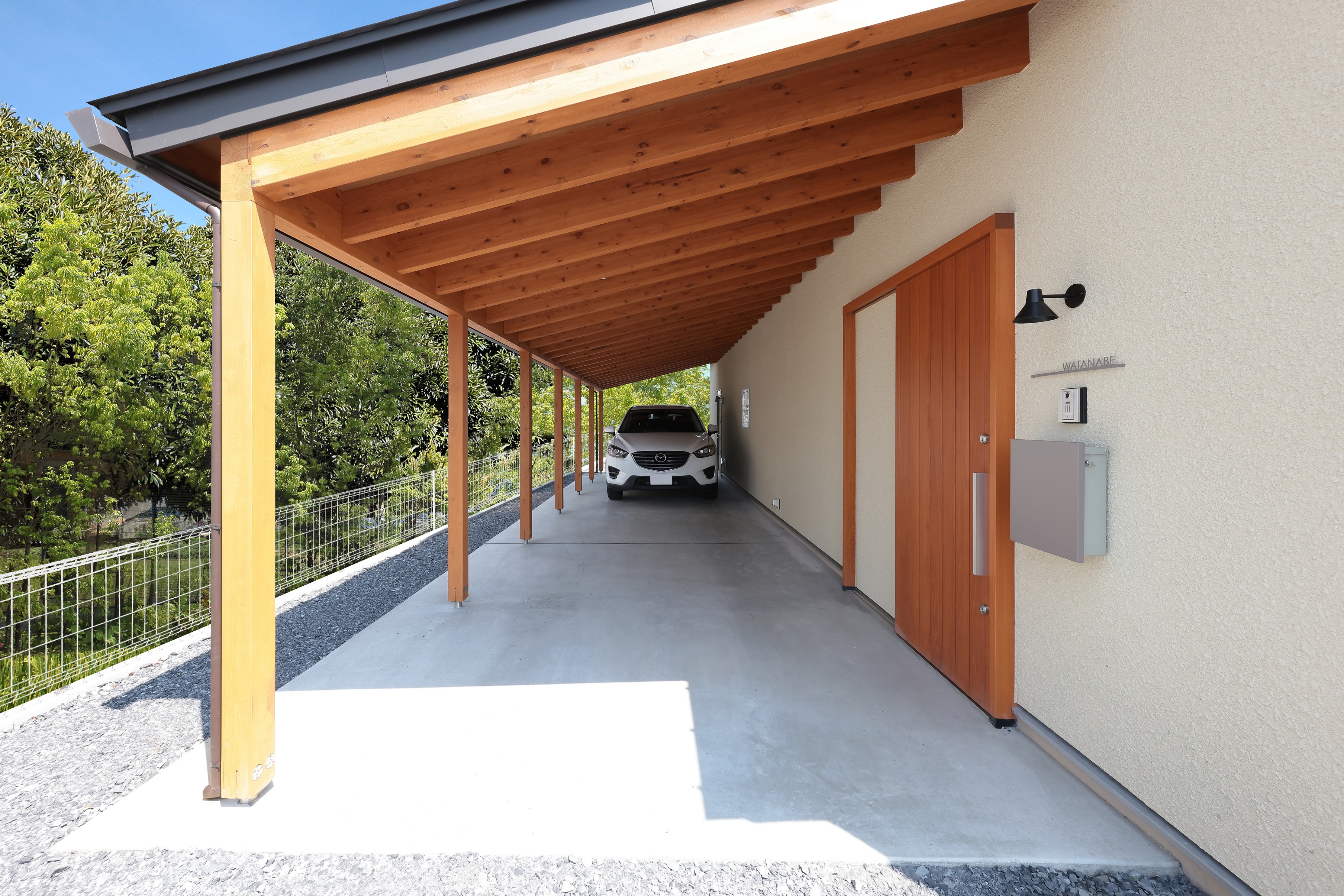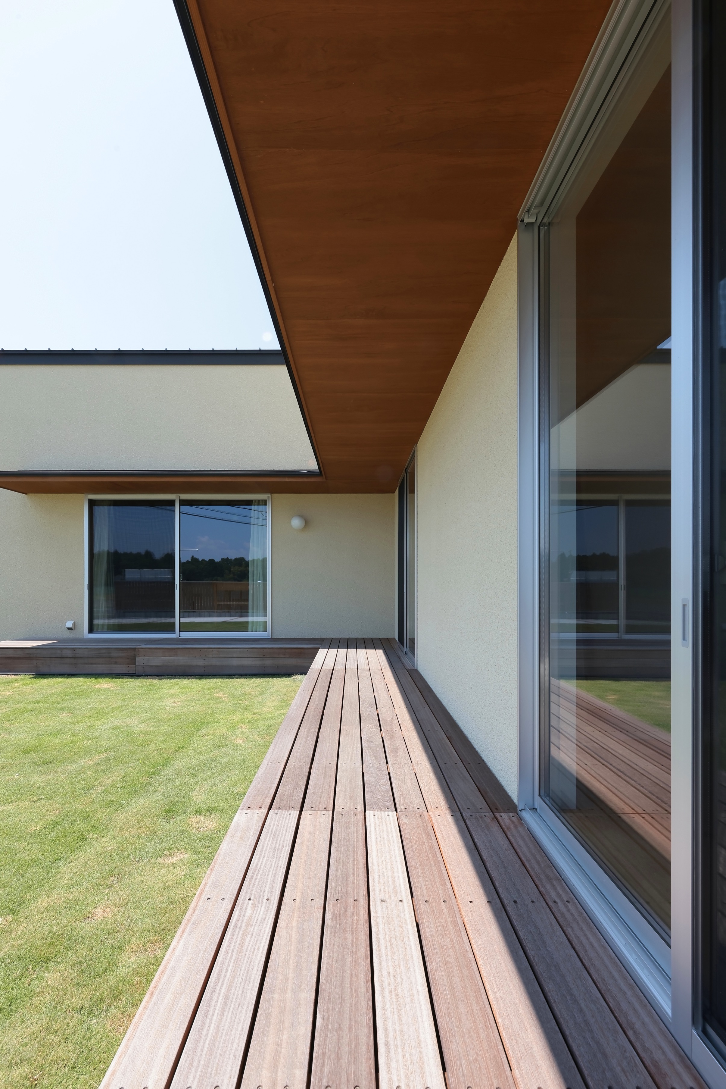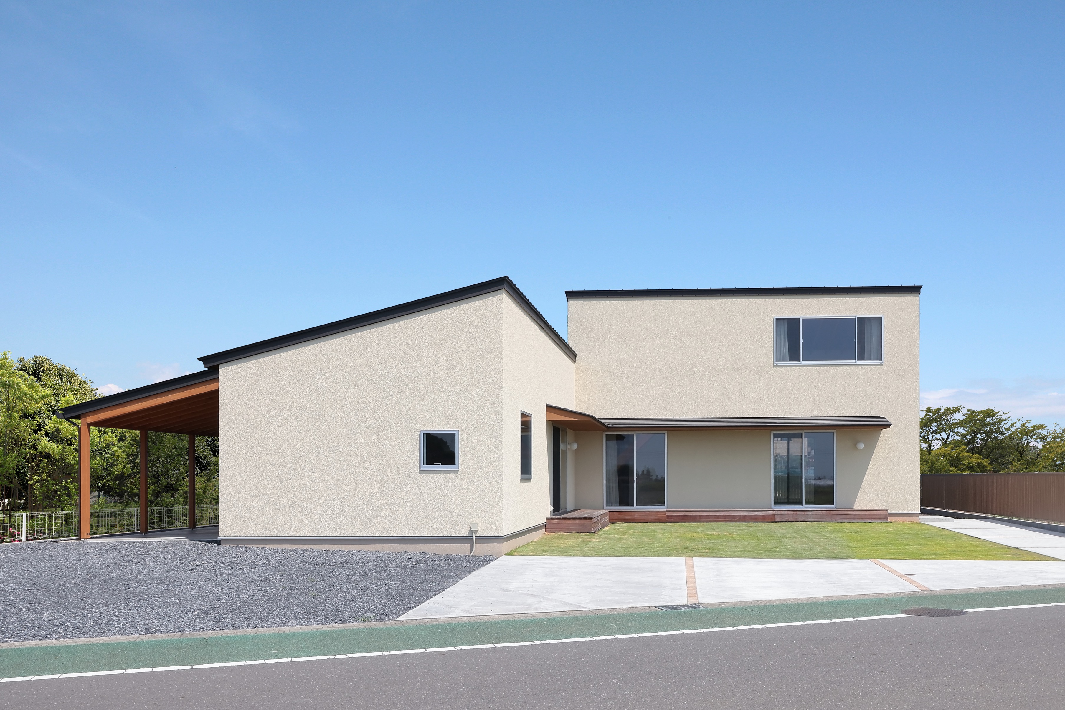 We placed an L-shaped building in the center of a large site, and planned to have various connections with external spaces such as the garden and garage that each building faces.